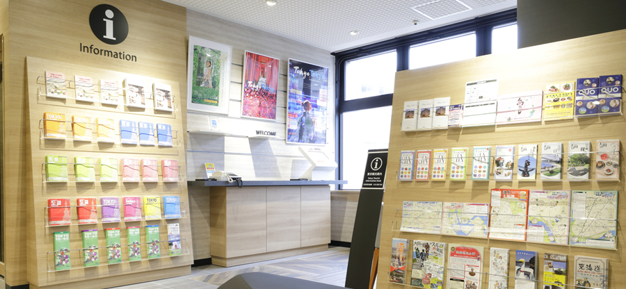 We provide tour guide maps in Tokyo, PC corner, free Wi-Fi and more.